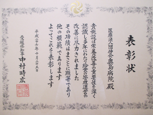 - 平成27年特定給食施設として県知事から表彰をされました。